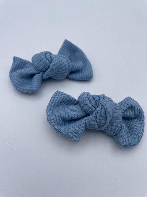 2 einfach zu tragende Haarspangen bestehend aus Metall und einer Schleife aus Ribstrick Baumwolljersey