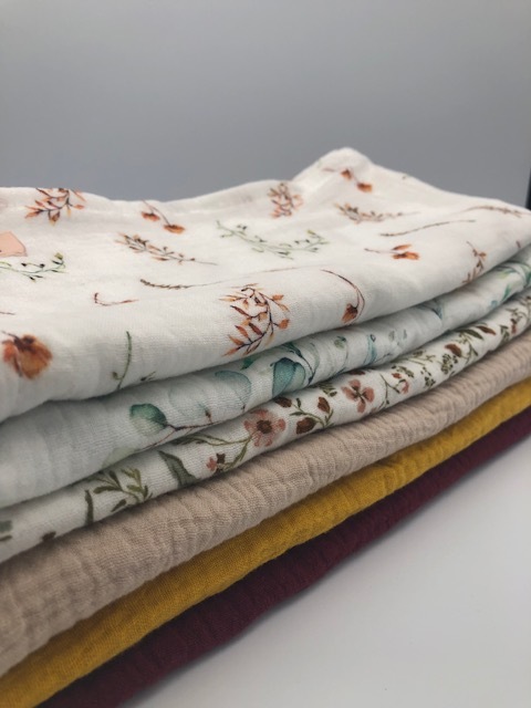 Preview: ocker hellbeige spätsommer blütenzauber eukalyptus bouquetweiches Musselin Kuschel-/Spucktuch Halstuch bordeaux
